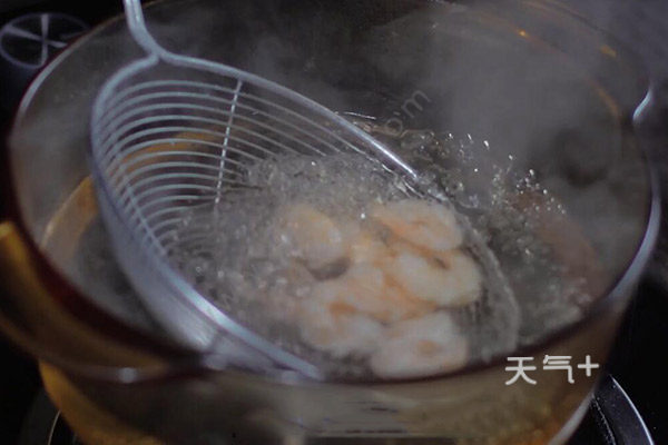2.锅中水沸后,倒入玉米段生后捞出沥干,放入虾仁过水后快速捞出沥干。