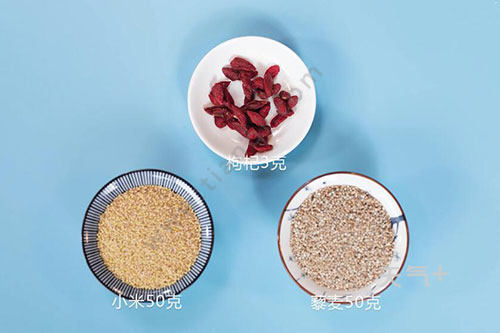 藜麦50克,小米50克,枸杞3克;
