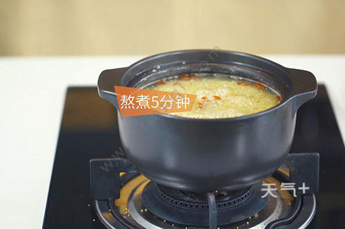3.放入枸杞,继续熬煮5分钟。即可享用美味。