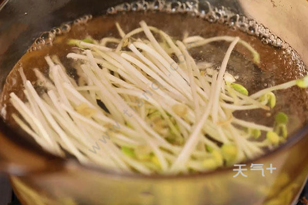 2.锅中倒入适量清水烧开,依次放入黄豆、豆芽。焯熟捞出;