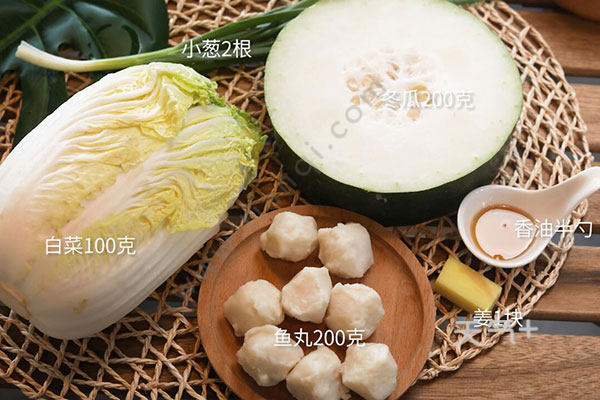 白菜100克,冬瓜200克,鱼丸200克;