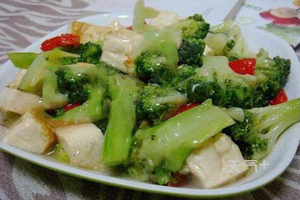 西兰花豆腐的做法 西兰花豆腐怎么做的西兰花洗净撕成小朵,盐水泡20分钟,水烧开,西兰花焯水捞出,大蒜切末,豆腐切片,锅内放油,将豆腐放锅里煎至金黄盛出,留底油,放蒜末炒香,加红椒、料酒、胡椒粉、盐、生抽,再倒清水烧开,把豆腐放进去,烧到剩一半汤汁时,放西兰花烧5分钟,加味精,水淀粉勾芡即可出锅。