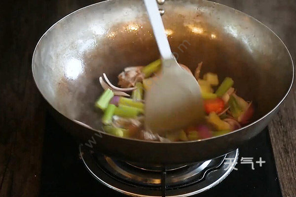 2.牛腩凉水下锅,焯水3分钟,捞出洗净。锅中放入黄油,放入牛肉煸炒,放入土豆、胡萝卜、芹菜、洋葱炒匀,倒入砂锅中。