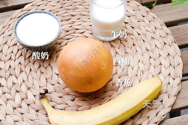 香蕉、西柚,牛奶,酸奶