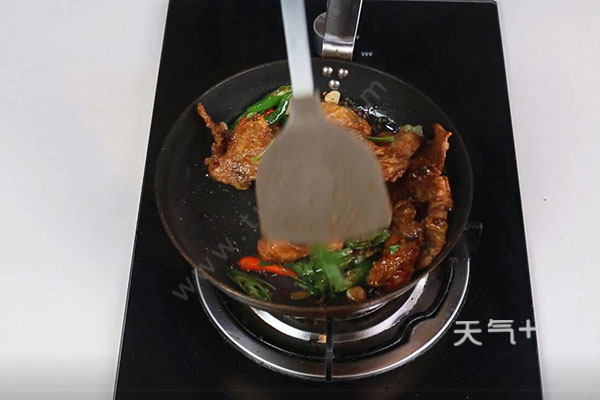 4.锅中留底油,爆香姜蒜、花椒,放入杭椒、小米椒炒匀,放入鱼片、生抽1勺、蚝油1勺翻炒均匀,香酥草鱼的做法 家常香酥草鱼怎么做放入香菜段、盐半勺、鸡精半勺拌匀即可。