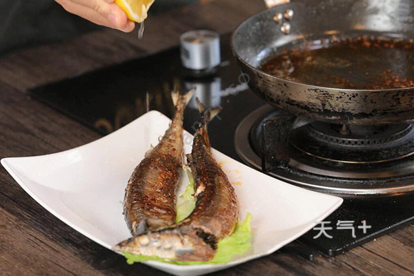 3.锅中倒入适量橄榄油,放入秋刀鱼小火煎至2面金黄,盛出挤上柠檬汁即可享用。