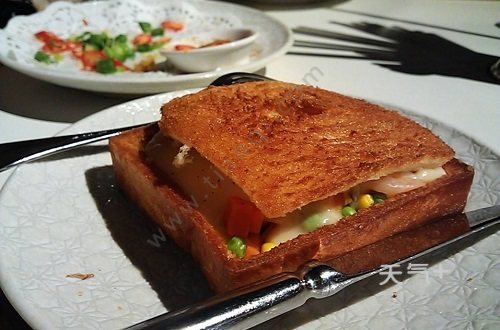 棺材板这个名字听起来很特别,这道台湾小吃是台湾比较受欢迎的一款,将吐司炸一炸,然后将中间部分挖空,然后把鸡肉、马铃薯、虾仁等食材填进去,最后把面包皮盖上,一道好吃的棺材板就做好了。棺材板很特别,比较像西式小吃,一般用刀叉进食,因为这道菜形状和棺材很相似,所以取名棺材板。