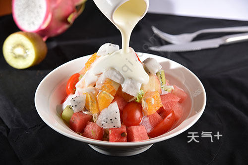 1、水果沙拉的水果选择可以根据自己的口味进行选择,但要记得各种水果的禁忌。
