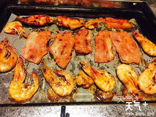咖啡,烤冷面,雪花牛肉,冰淇淋,铁板培根卷金针菇等