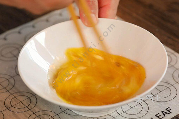 2.在一个碗里放入淀粉、孜然粉、盐、油,并打一颗蛋在里面,接着搅拌均匀。