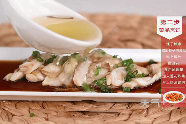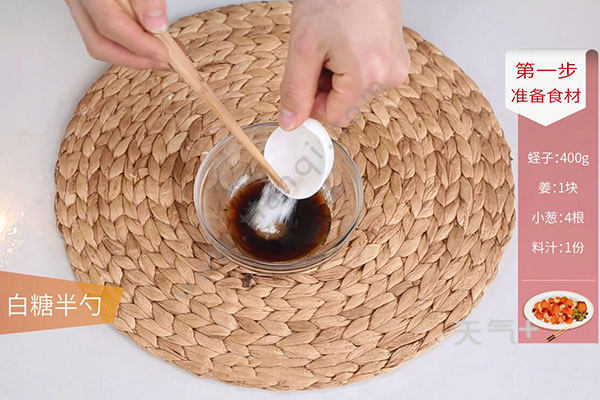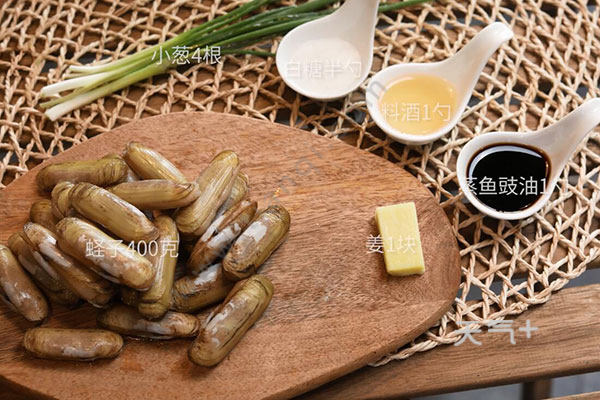 姜1块,小葱4根,料酒1勺,蒸鱼豉油1勺(大勺),醋1勺,葱油蛏子的做法 葱油蛏子怎么烧白糖半勺;