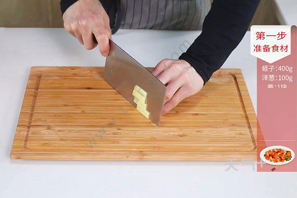 1.蛏子放入清水中,加入盐1勺、食用油适量浸泡1小时(便于蛏子吐沙)。洋葱切条姜切片,蒜切粒,葱切粒,小米椒、二荆条切粒。干辣椒剪成段;