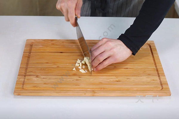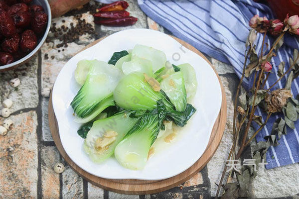 1.油菜摘好洗净,蒜切末。