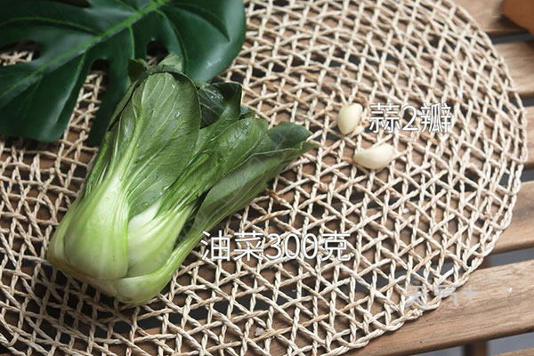 油菜300克,蒜2瓣,盐半勺,鸡精半勺;