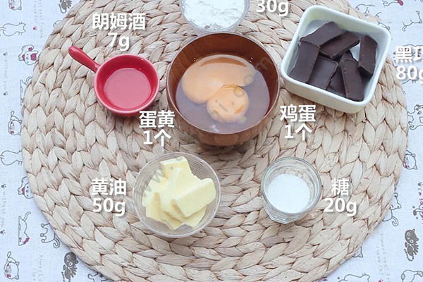 低粉30克,纸杯蛋糕的做法 纸杯蛋糕怎么烤朗姆酒7克,鸡蛋1个,蛋黄1个,黄油50克,糖20克,黑巧克力80克