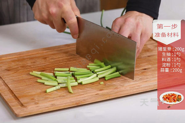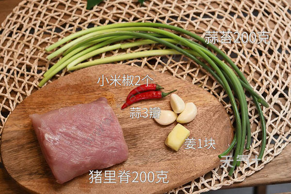猪里脊200g,蒜苔;