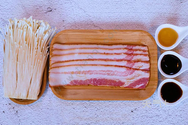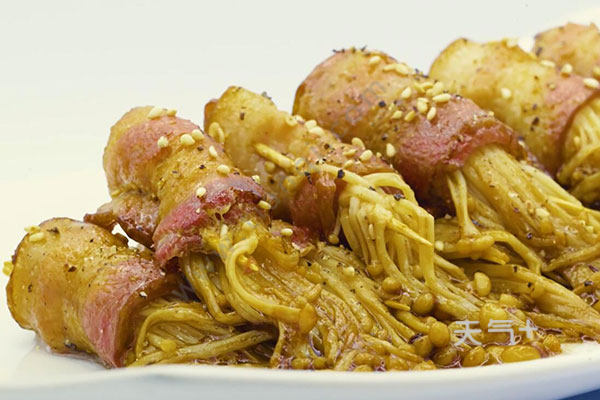 2、金针菇富含蛋白质,还含有VB1、VB2、VC等多种维生素,且富含钙、磷、铁等多种矿物质,营养十分丰富。金针菇的铁含量是菠菜的20倍,又有许多纤维质,可促进新陈代谢,并有镇定的作用,适合孕妇产后多吃。培根金针菇的做法 怎么做培根金针菇