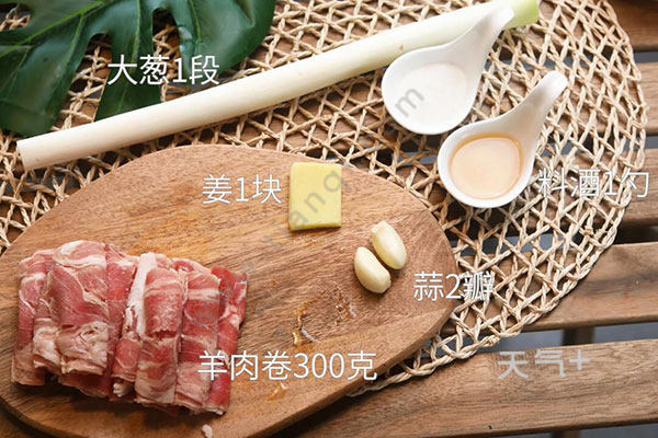 羊肉卷300克,大葱2根;