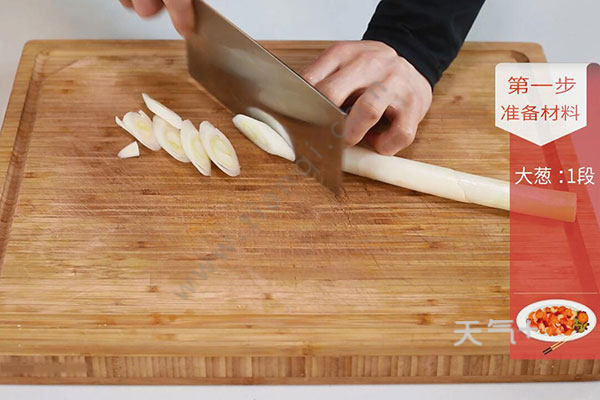 1.大葱斜刀切段。姜切片,蒜切片;