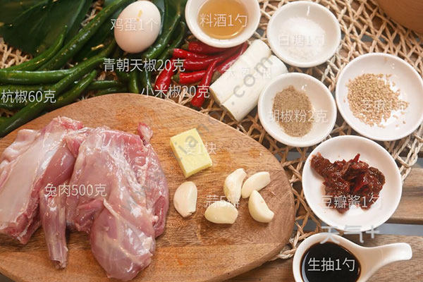 兔肉500克,青朝天椒20克;