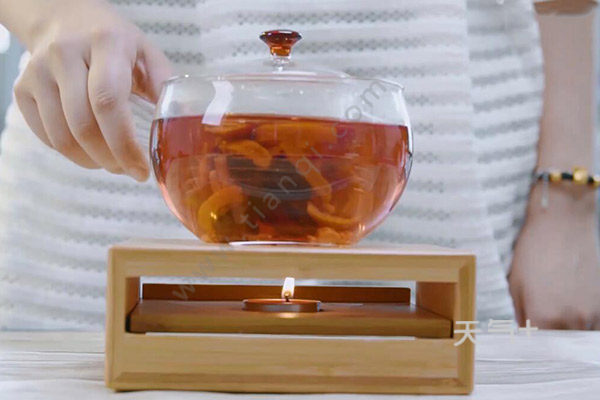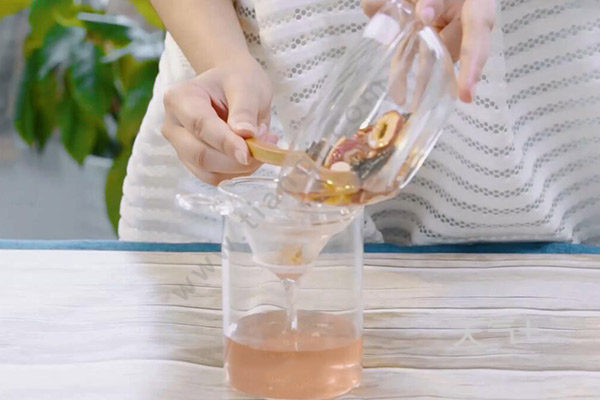 2.将洗净后的原料,倒入玻璃壶中然后再倒入开水,慢熬半小时。