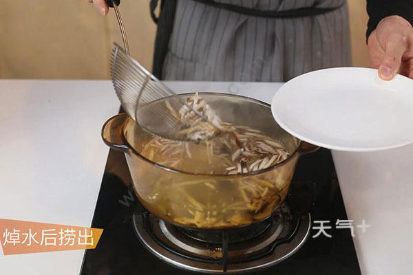 2.锅中放入适量水烧开,放入豆腐、黄花、木耳、香菇焯水后捞出;
