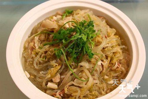 猪肉炖粉条是一道家常菜品,制作原料主要有酸菜、粉条、猪肉等。先将五花肉切片煸出油,与酸菜一同爆炒,加水炖煮成汤后,放入红薯粉丝煮软即可。