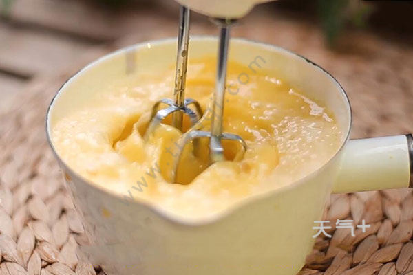 2.奶锅中倒入柠檬汁鸡蛋以及方糖,用搅拌器搅拌。