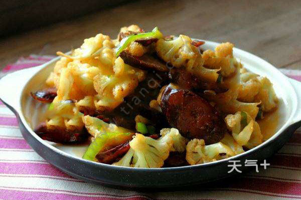 3、因为蚝油和香肠都有咸味,所以盐不可以多加,口味清淡的也可以不加。腊肠炒什么好吃 菜花炒腊肠的做法