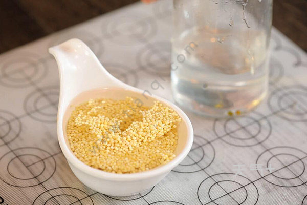 1.绿豆洗净浸泡5小时,小米洗净浸泡30分钟。