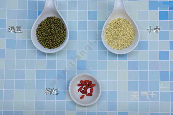 绿豆小米粥的做法 绿豆小米粥怎么做绿豆洗净浸泡5小时,小米洗净浸泡30分钟,锅中放入适量清水,大火烧开,放入绿豆煮开后转小火熬煮,加入小米继续熬煮,期间不定时搅拌防止糊锅,放入枸杞继续焖煮,最后根据个人口味添加冰糖即可。