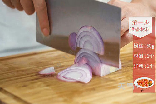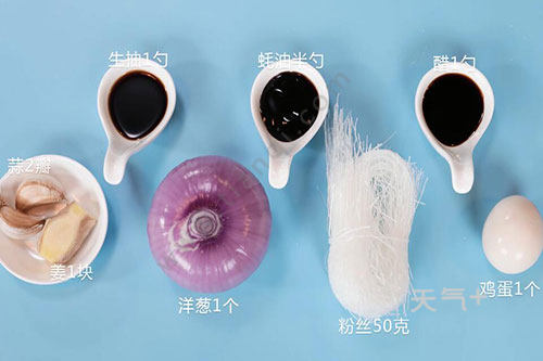 粉丝50克,洋葱1个,鸡蛋1个;