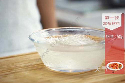1.粉丝用温水泡软,捞出沥干;