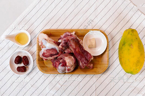 猪筒骨300克,姜1块,料酒1勺,红枣3颗,木瓜1个