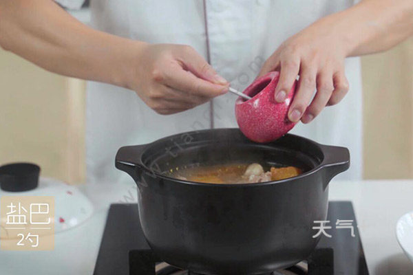 3.锅中放入猪筒骨、木瓜块、红枣、适量清水,开大火煮沸后转小火煲2小时,调入盐2勺即可。