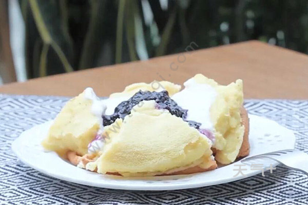 4.最后放入烤盘烘培,取出后放入酸奶和蓝莓酱即可。