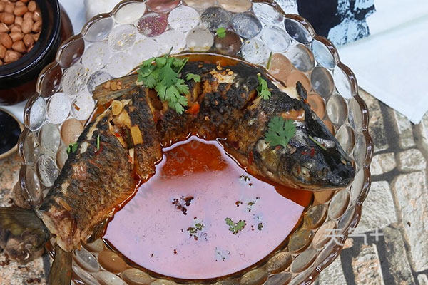 4.锅中锅留底油,爆香豆瓣酱、黄豆酱、八角、姜片、蒜粒、葱段,放入盐、生抽、老抽、醋、料酒、白糖、清水适量煮2分钟,放入草鱼焖煮15分钟,汤汁稍浓后盛出,撒上香菜即可。