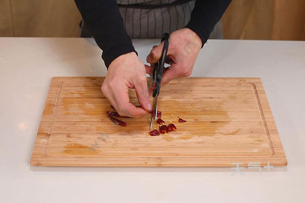 1.豇豆洗净切段,姜切末,蒜切末,干辣椒剪成段。