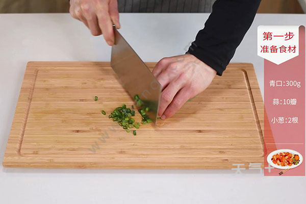 1.青口洗净,蒜切末,小葱切葱花。