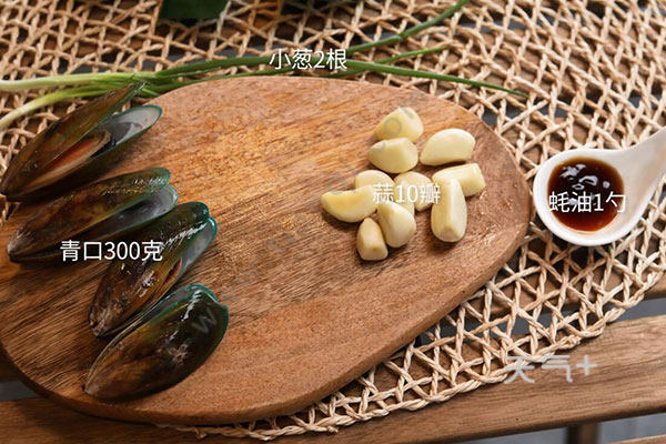 青口洗净,蒜切末,小葱切葱花,油温烧至5成热,放蒜末炒香盛出,放凉后放生抽、蚝油拌匀,将蒜蓉依次淋在青口上,放锅中蒸7分钟取出即可。