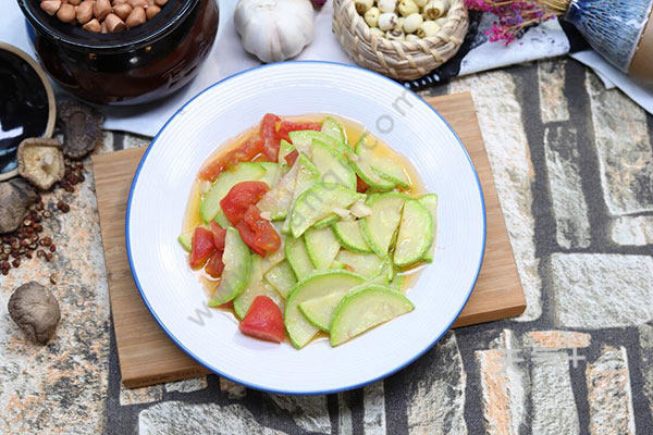 1、西葫芦含有较多维生素C、葡萄糖等营养物质,尤其是钙的含量极高;西红柿性微寒味甘酸,生津止渴,凉血养肝,清热解毒,治疗高血压、坏血病,预防动脉硬化、肝脏病等。