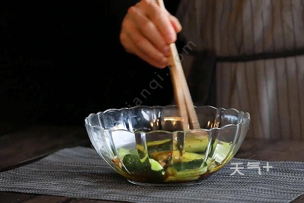 黄瓜1根,盐2勺,小米椒3个,蒜2瓣,醋2勺,生抽1勺,白糖1勺,腌脆黄瓜的做法 怎么腌脆黄瓜香油1勺,鸡精半勺;