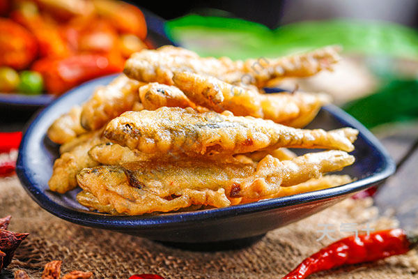 将鱼内脏清洗干净,沥干水分装入盆中,小鱼里加盐,再加一个鸡蛋和适薯粉、胡椒粉拌匀,锅烧热,倒油烧至7成热,放小鱼到锅里炸,炸至小鱼表面金黄,然后捞出即可。