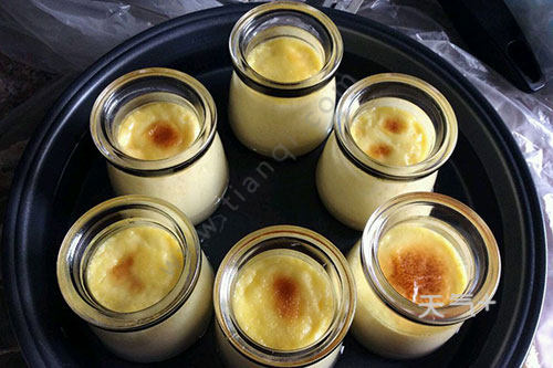 10.结束后打开烤箱,取出布丁,稍微晾一下放入冰箱冷藏即可。