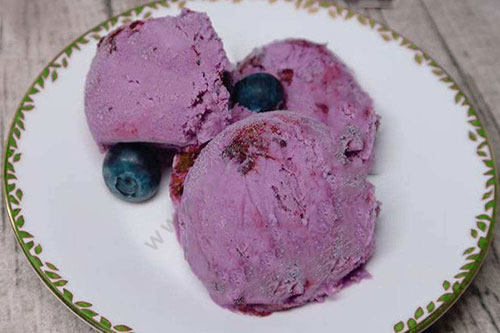 2、加热牛奶蛋黄液的时候,变浓稠之后会挂在刮刀上,这时候要立即关火,千万别煮至沸腾,蛋黄会结块。蓝莓冰淇淋的做法 自制蓝莓冰淇淋的方法