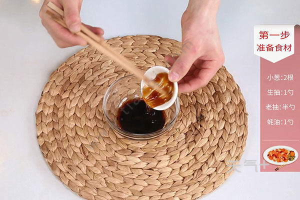小葱2根,生抽1勺,老抽半勺,蚝油1勺;