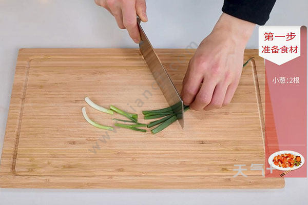 1.小葱洗净切段,留葱叶;