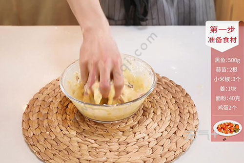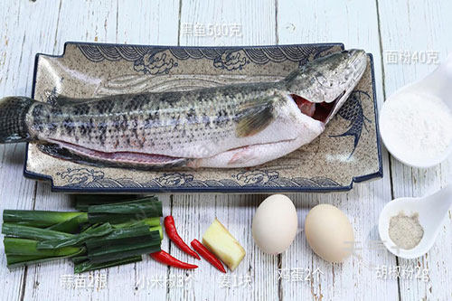 黑鱼500克,蒜苗2根,小米椒3个,姜1块,鸡蛋2个,面粉40克;