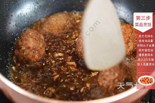 4.锅中倒入适量油,油温烧至6成热,放入丸子炸制成金黄色捞出;