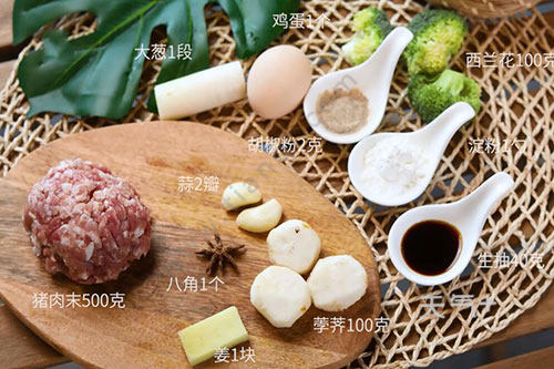 1.西兰花洗净切小朵。荸荠切碎,姜切末,蒜切末、大葱切末;